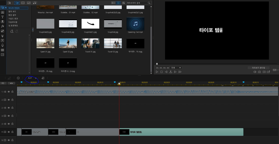 해당 사진은 파워디렉터 템플릿 내 타임라인의 모습입니다.